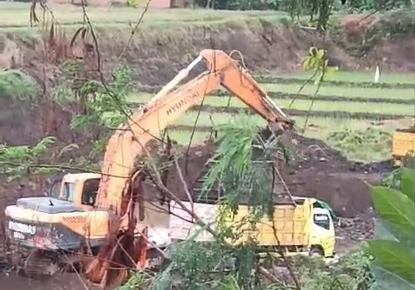 Ironisnya, area tambang tersebut berada di kawasan persawahan produktif yang selama ini dimanfaatkan untuk bercocok tanam oleh masyarakat. Lahan subur yang biasa ditanami padi dan palawija kini berubah menjadi lubang besar akibat aktivitas penambangan.