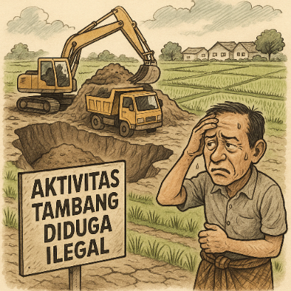 Aktifitas Tambang Diduga Ilegal di Tengah Persawahan Desa Bedewang, Milik siapa ya?